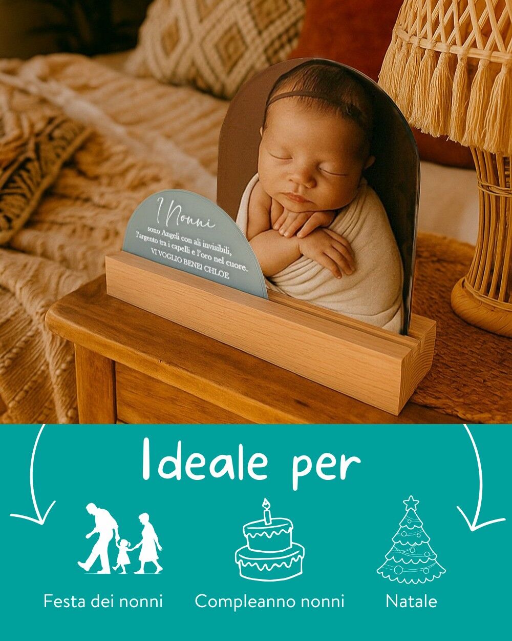 La nostra targhetta personalizzabile con foto è l’idea perfetta come regalo per la Festa dei Nonni, che in Italia si celebra il 2 ottobre. Un giorno speciale, dedicato a chi custodisce con amore tradizioni, ricordi e affetto infinito.