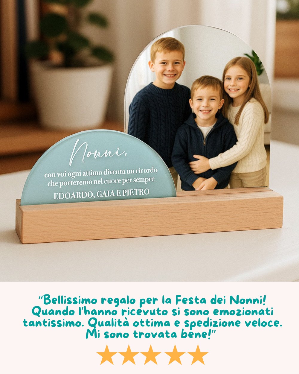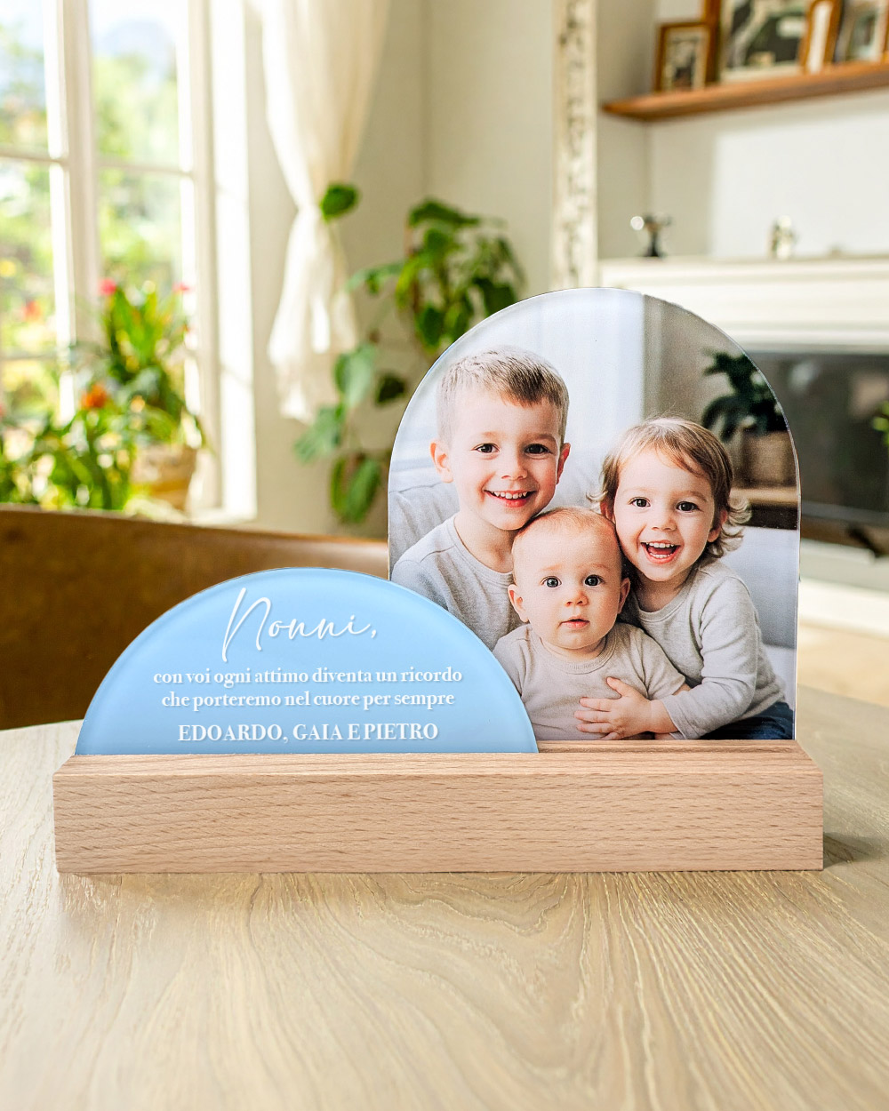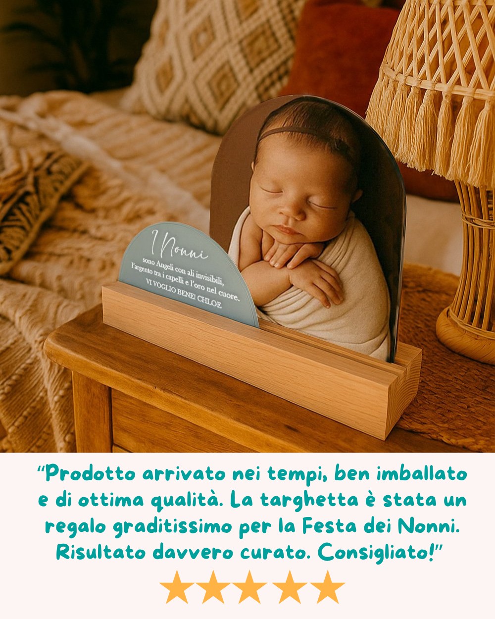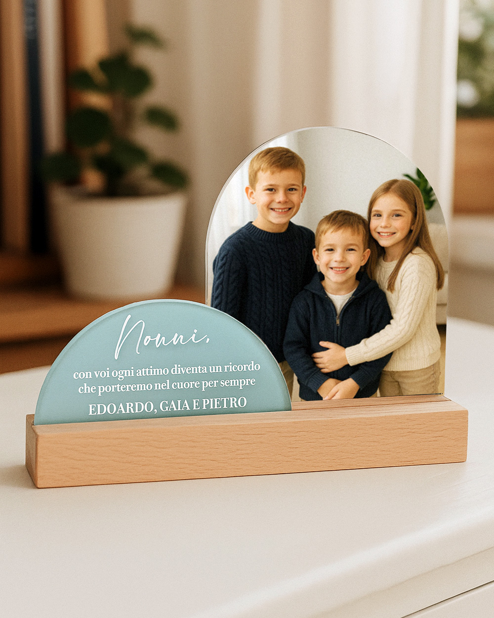 Se stai cercando un regalo Festa dei Nonni che sappia davvero lasciare il segno, questa targhetta personalizzabile con foto e dedica è la scelta giusta. Un oggetto elegante e significativo, capace di racchiudere l’amore dei nipoti in un ricordo che resterà per sempre.