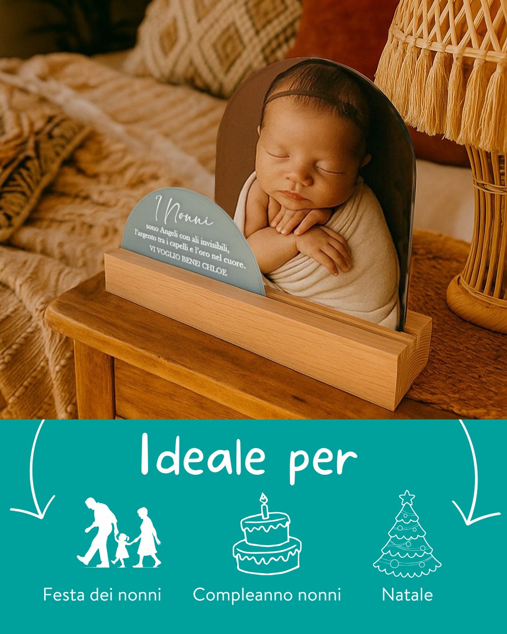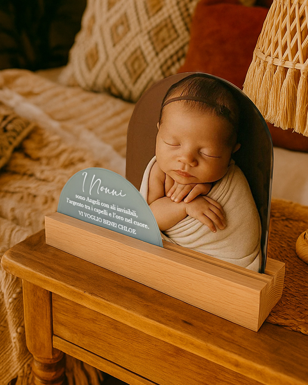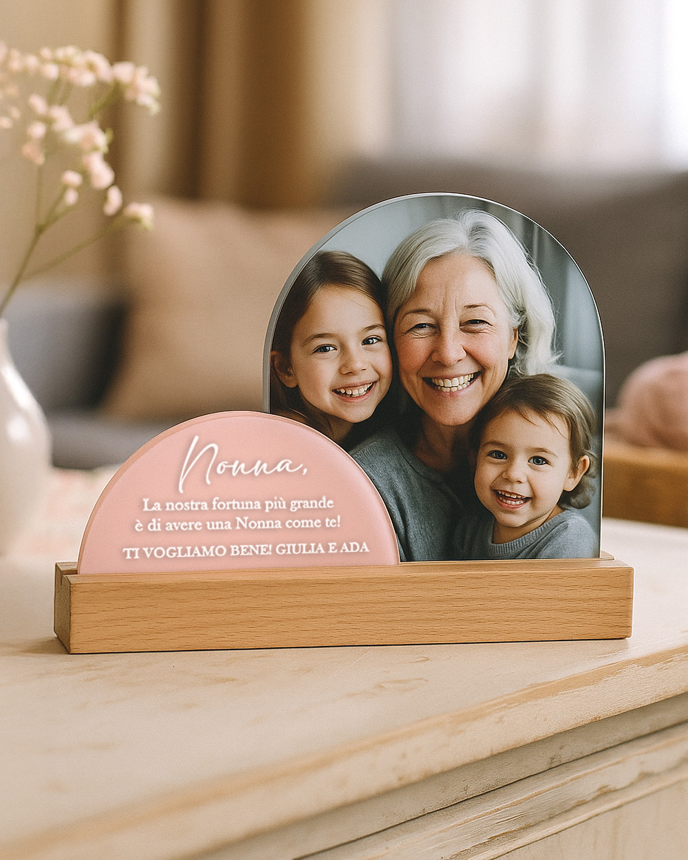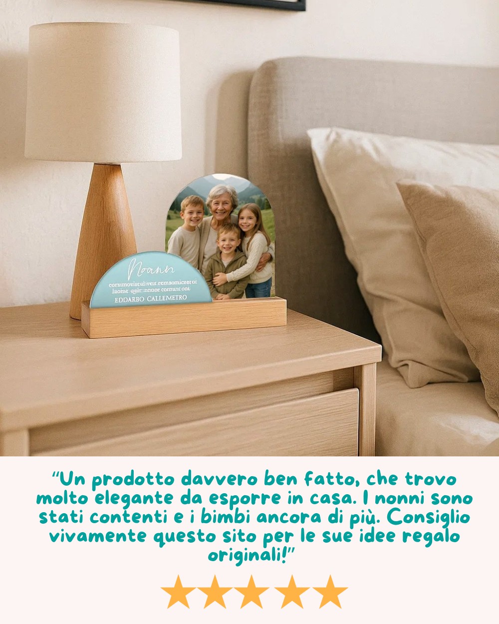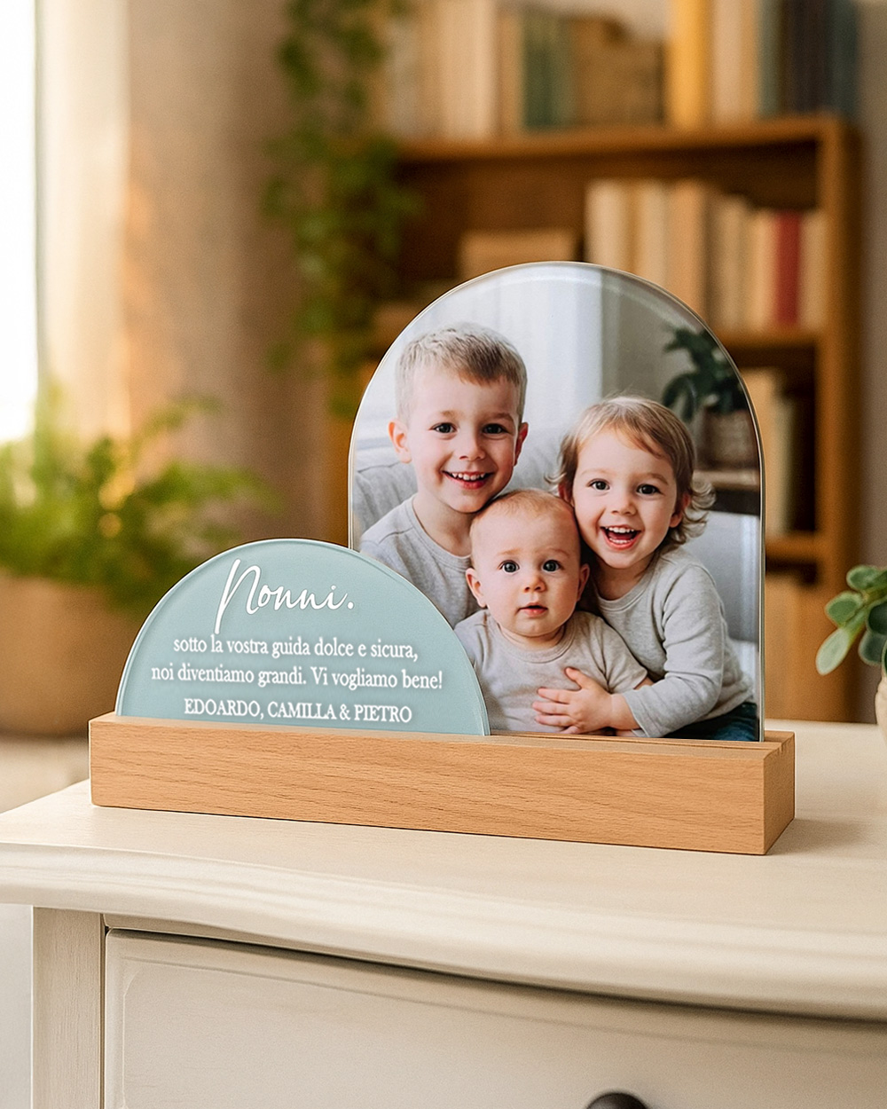 Se stai cercando un regalo Festa dei Nonni che sappia davvero lasciare il segno, questa targhetta personalizzabile con foto e dedica è la scelta giusta. Un oggetto elegante e significativo, capace di racchiudere l’amore dei nipoti in un ricordo che resterà per sempre.