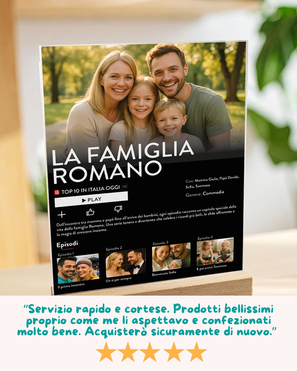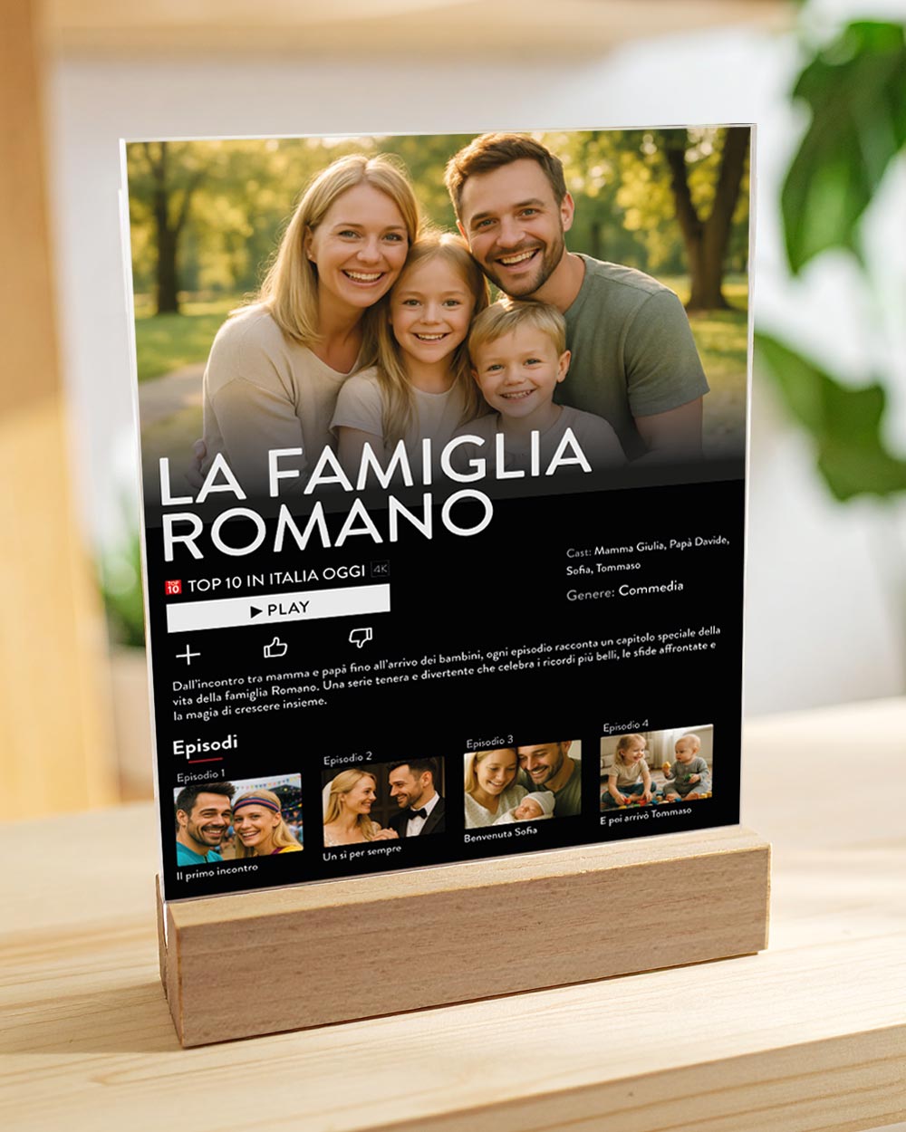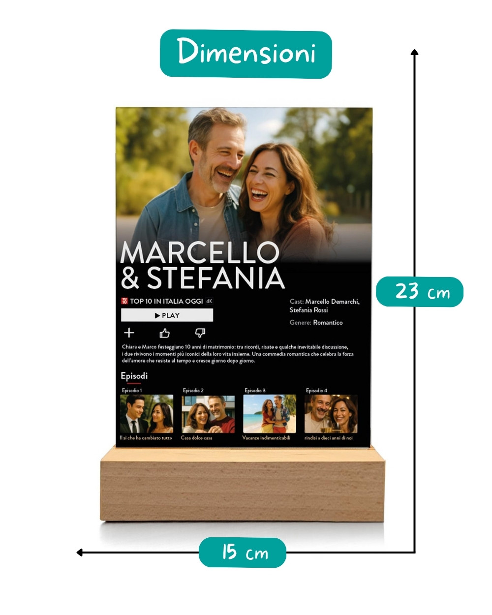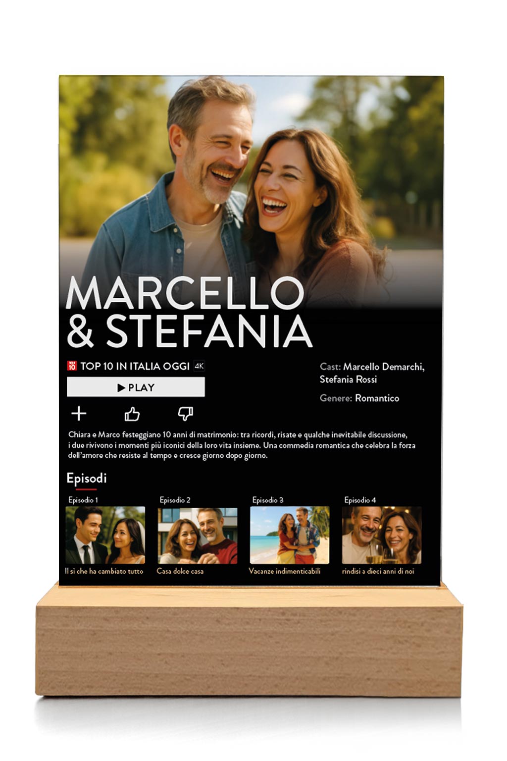 PERSONALIZZAZIONE: personalizza la targhetta con 5 foto, la trama della vostra storia e i vostri nomi.
