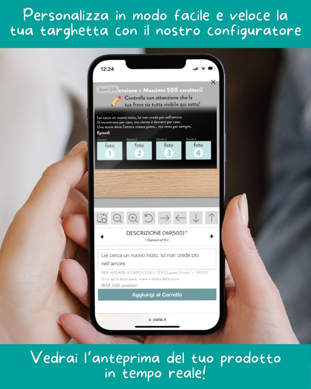 COME FUNZIONA: utilizza il nostro configuratore automatico per creare la tua targhetta passo dopo passo e vedere l’anteprima del prodotto in tempo reale.