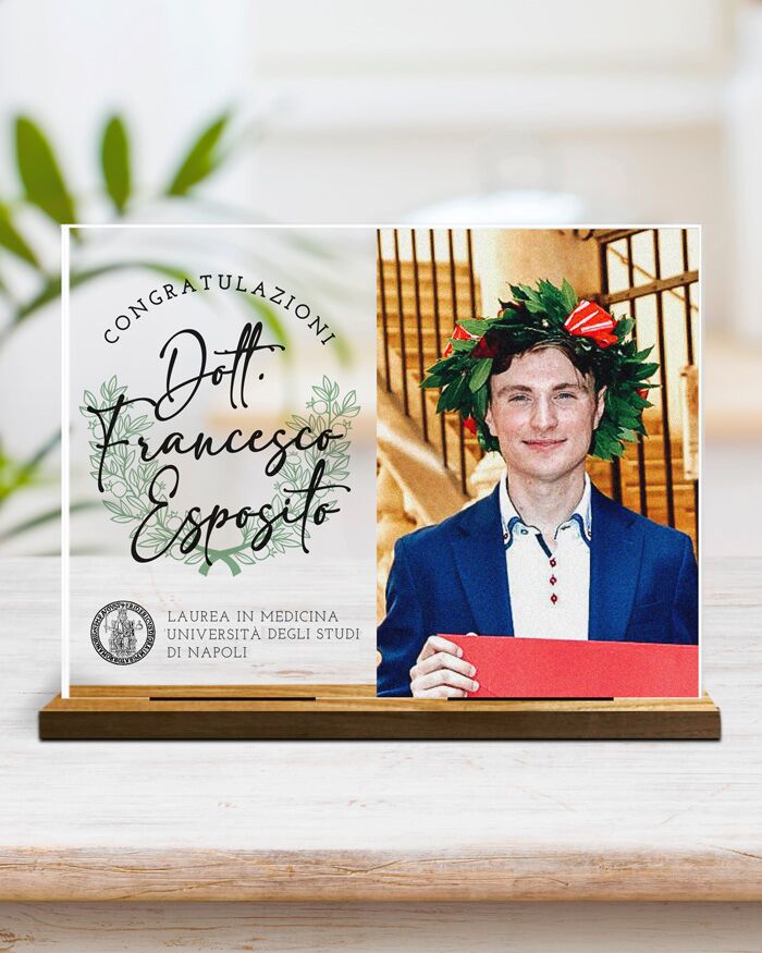 Questa originale targhetta può essere personalizzata inserendo la foto e le frasi che desideri. Sarà un regalo molto gradito dal neo dottore o neo dottoressa che lo riceverà in occasione del conseguimento della sua laurea triennale, magistrale, dottorato o esame di maturità.