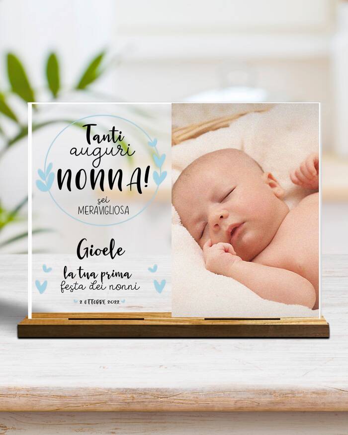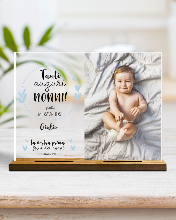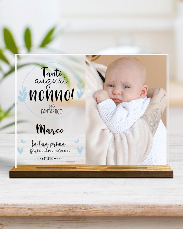 Questa dolcissima targhetta può essere personalizzata inserendo la foto e le frasi che desideri. Sarà un regalo molto gradito dai tuoi nonni nel giorno della loro festa.