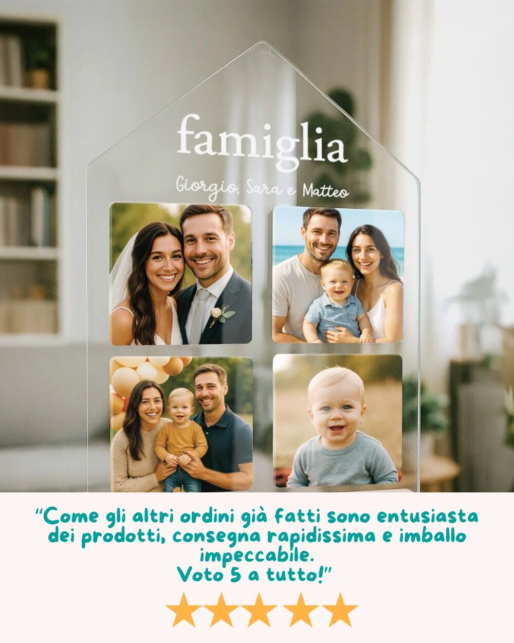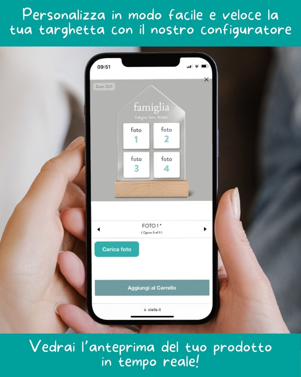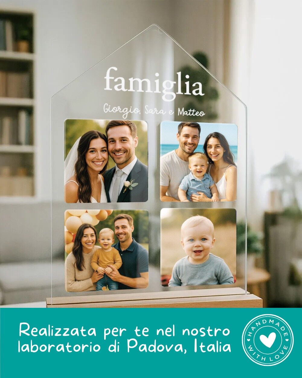 PERSONALIZZAZIONE: personalizza la targhetta con 4 foto interscambiabili e aggiungi una dedica. Se lo desideri, personalizza la base della targhetta con un’ulteriore dedica.