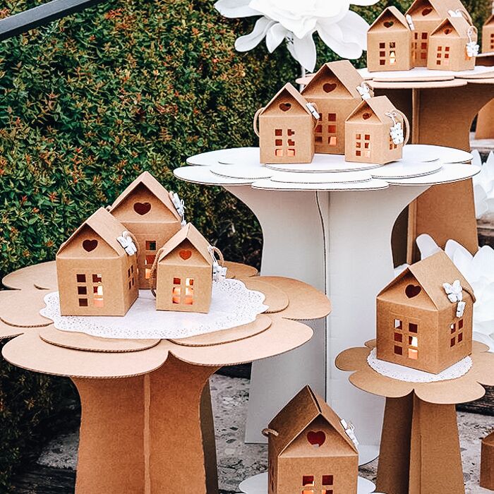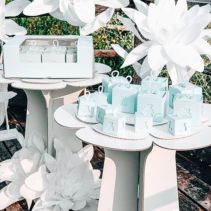 Funzionale ed elegante alzatina in cartone a 2 piani, utile per allestire un evento o un angolo torte. Realizzate in cartone resistente, si monta in un attimo, è facile da spostare e soprattutto è un valido supporto per disporre dolci di ogni genere, confetti e bomboniere. Disponibile in Bianco o color Avana in varie misure.