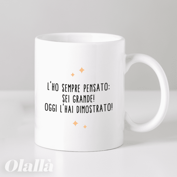 Vuoi fare le congratulazioni all’amica o amico che si laureano e desideri farlo in modo spiritoso? Non perderti queste tazze divertenti che ogni mattina ricorderanno al laureato o alla laureata del loro traguardo importante. È possibile anche aggiungere una frase sul retro, con una dedica speciale o un augurio.