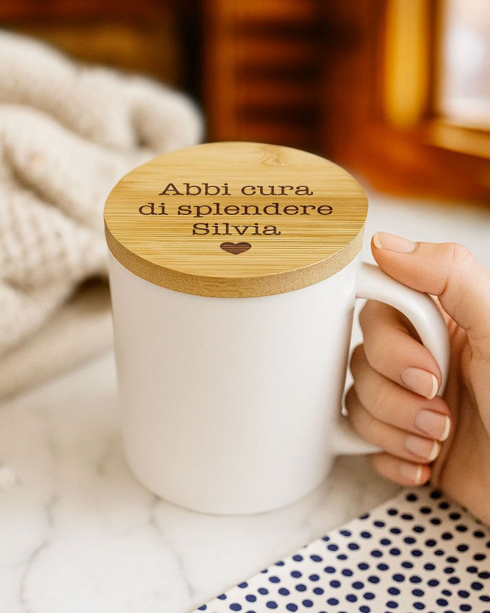 PERSONALIZZAZIONE: personalizza il tappo della tazza con la tua dedica.