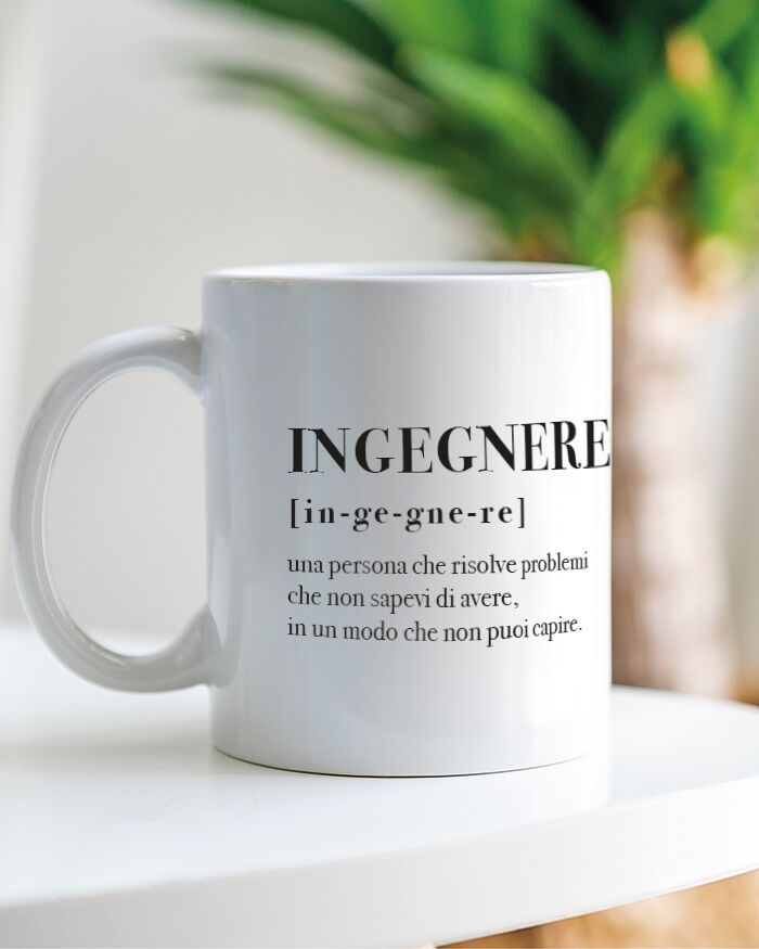 Originale Tazza Mug con Scritta “Ingegnere: una persona che risolve problemi che non sapevi di avere, in un modo che non puoi capire”, perfetta per ricordare scherzosamente al nostro neo laureato in ingegneria che l’ufficio complicazioni affari semplici è proprio il suo habitat naturale! Donala al tuo amico del cuore, fratello o fidanzato laureato in ingegneria: il successo è garantito!