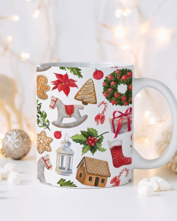 Tazza Natalizia Mug con Ghirlande e Casette di Natale – Idea Regalo Natale