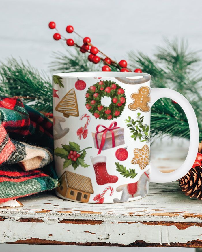 Carinissima tazza mug in ceramica con casette, ghirlande e omini di pan di zenzero stampati. Una tazza davvero chic che ti accompagnerà lungo tutto il periodo natalizio e che ti farà rivivere l’atmosfera festosa del Natale!
