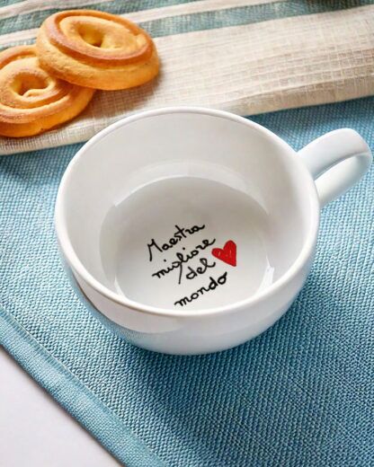 È un pensiero che unisce utilità e sentimento, capace di emozionare davvero. Un piccolo oggetto che ogni giorno le ricorderà quanto è stata importante per i suoi alunni, con un dolce messaggio che apparirà al termine di ogni caffè. Che sia per la maestra dell’asilo, delle elementari o delle medie, questa tazzina personalizzabile conquisterà tutti!
