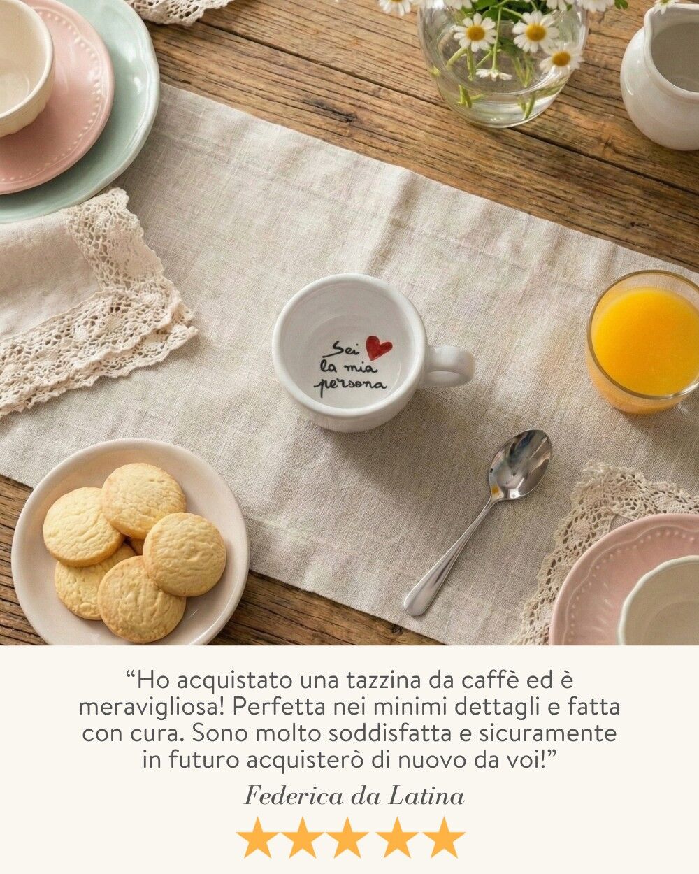 Ci sono regali che si dimenticano dopo pochi giorni… e poi ci sono quelli che restano nel cuore, che fanno sorridere ogni mattina, che diventano un rituale e un ricordo. Questa tazzina appartiene alla seconda categoria.