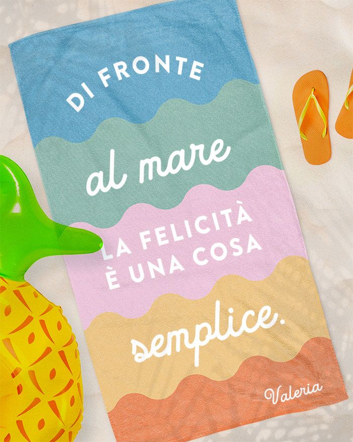 Telo Mare Colorato con Scritta Di Fronte al Mare la Felicità e’ una cosa Semplice