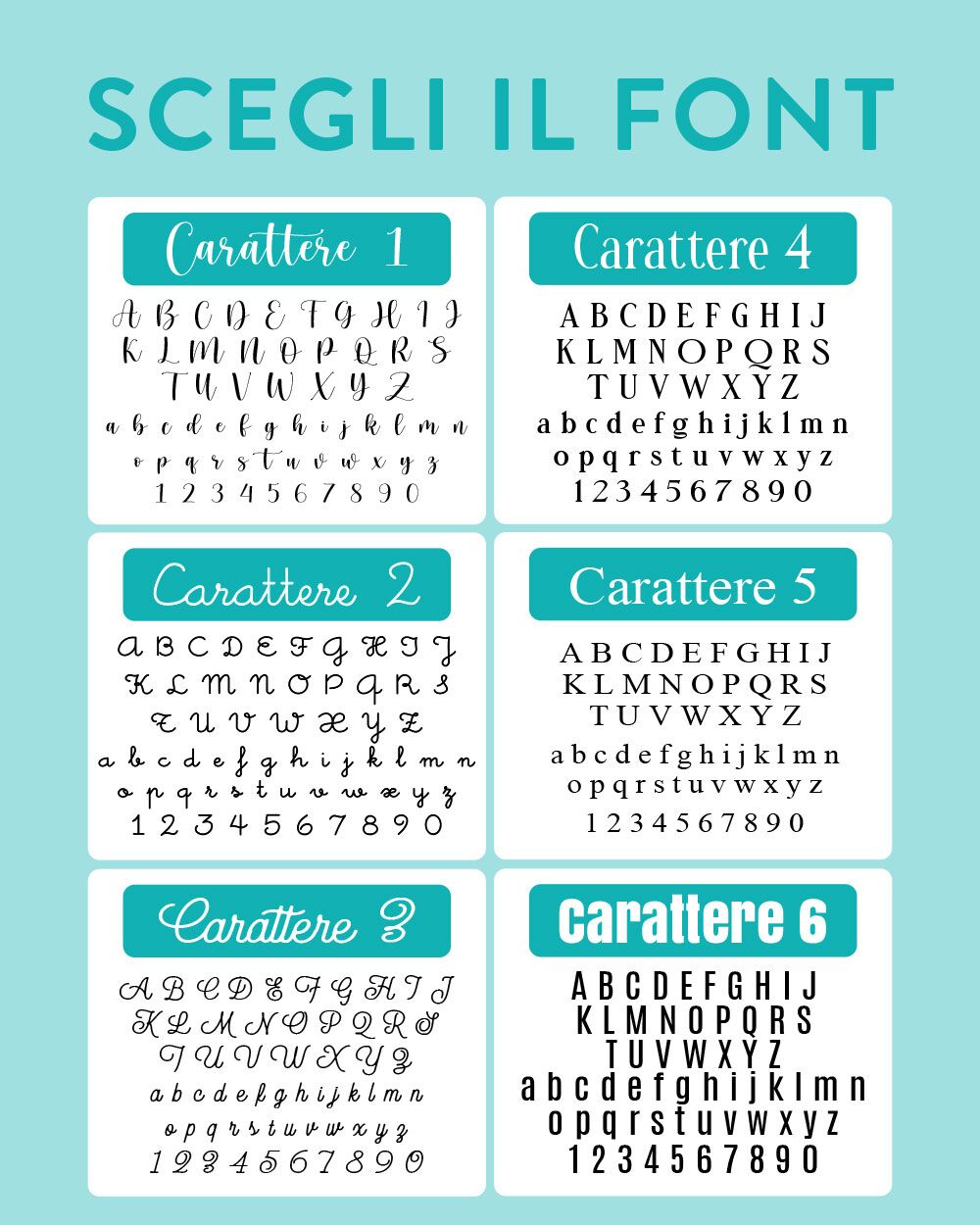 Scelta tra 6 caratteri. Consulta la galleria immagini per scegliere il tuo preferito!