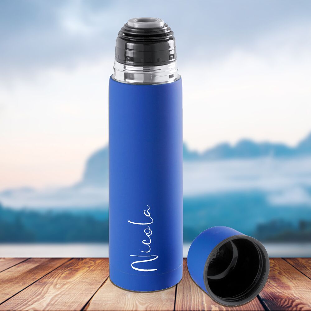 Bellissimo Thermos con tappo che funge anche da bicchierino, personalizzabile con il nome! Scegli questo regalo originale per sorprendere le persone che ami con un pensiero attento all’ambiente. Sarà sicuramente un regalo apprezzato da tutti gli amici e parenti che amano le soluzioni ecologiche ma con stile.