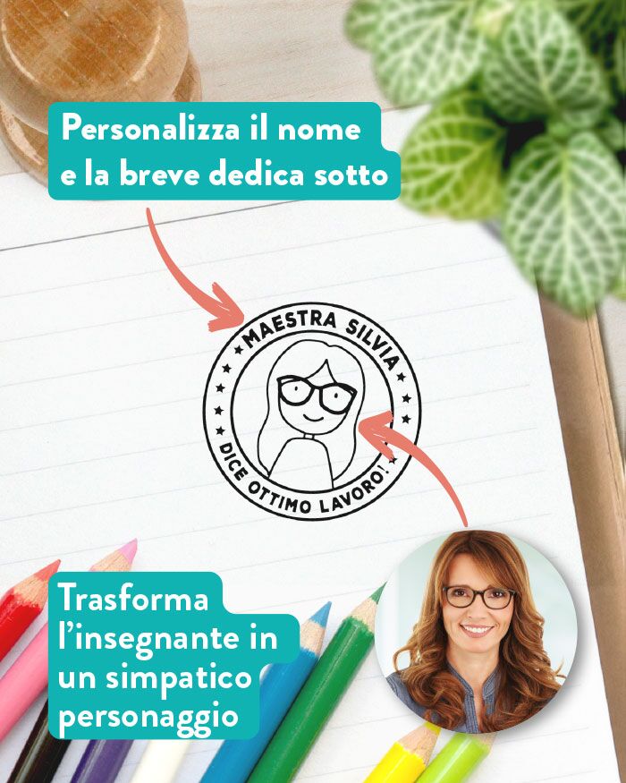 Assolutamente sì. È tra i regali più apprezzati sia dalle maestre dell’asilo e della scuola materna, che da quelle delle elementari e delle medie. Il timbro è utile ogni giorno per correggere i compiti, e il fatto che sia personalizzato con il ritratto e il nome della maestra lo rende un regalo che non passa inosservato.