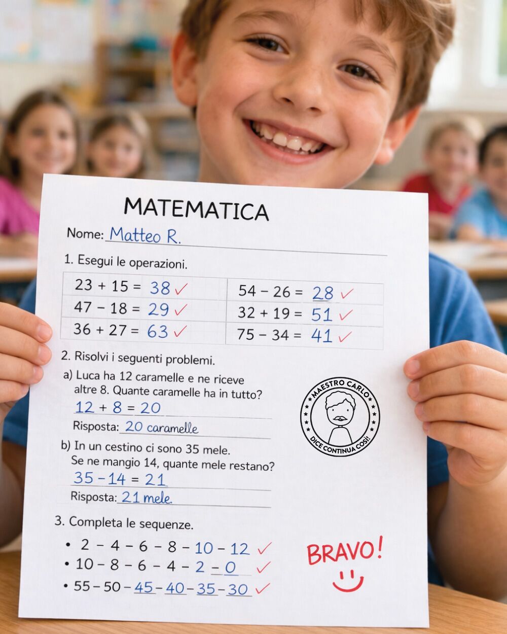 Certo. La frase in basso è completamente libera: puoi scrivere qualsiasi messaggio tu voglia, come “Ben Fatto!”, “Sei stato bravissimo!”, “Super!”, “Complimenti!” o qualsiasi altra espressione che la maestra usa abitualmente con i suoi alunni. Non sei vincolato a nessuna frase predefinita.