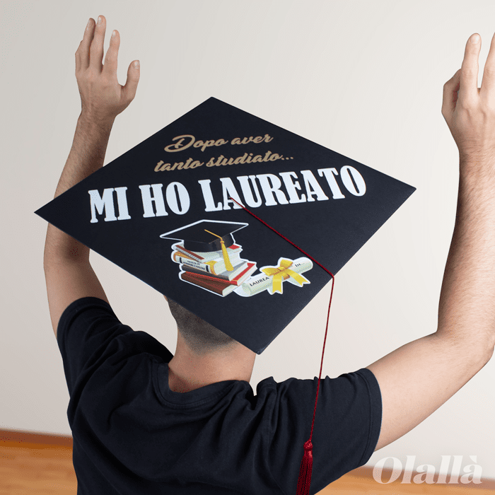 Tocco originale per festeggiamenti di laurea davvero speciali! Sul tradizionale copricapo che si indossa alla laurea è stampata la frase “Dopo aver tanto studiato mi ho laureato”. Ideale per celebrare tra le risate l’agognato traguardo del neo dottore!