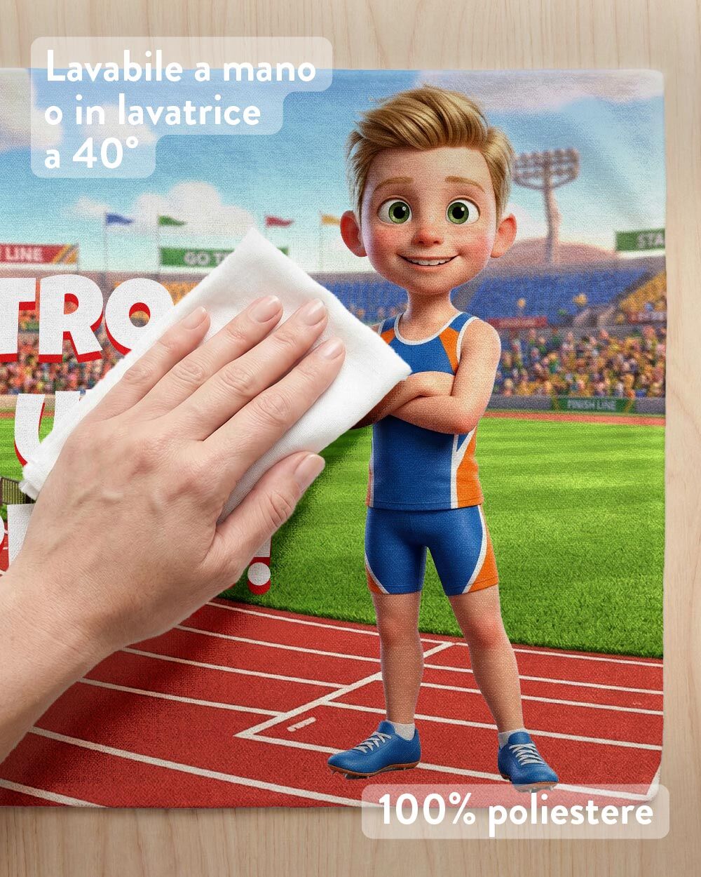 Tovaglietta personalizzata atleta lavabile in lavatrice a 40 gradi - tessuto 100% poliestere satinato Made in Italy