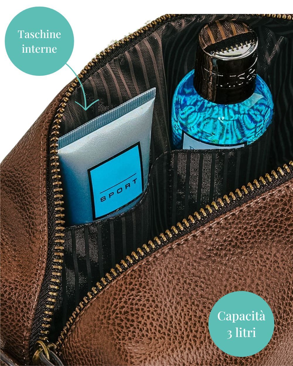 - Qualità e resistenza: Realizzato in ecopelle, questo beauty case è resistente e durevole, progettato per accompagnare il destinatario in ogni viaggio. La cerniera in metallo e la fodera morbida all’interno proteggono gli oggetti, garantendo al contempo un tocco di eleganza.