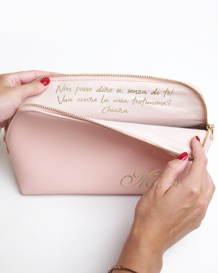 Beauty case trousse personalizzata in ecopelle con nome. Chiusura con zip di metallo.