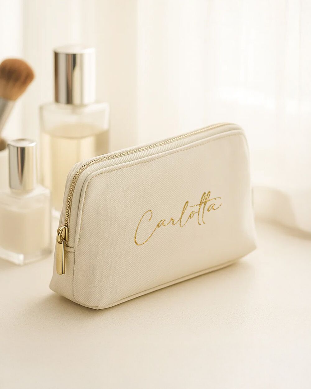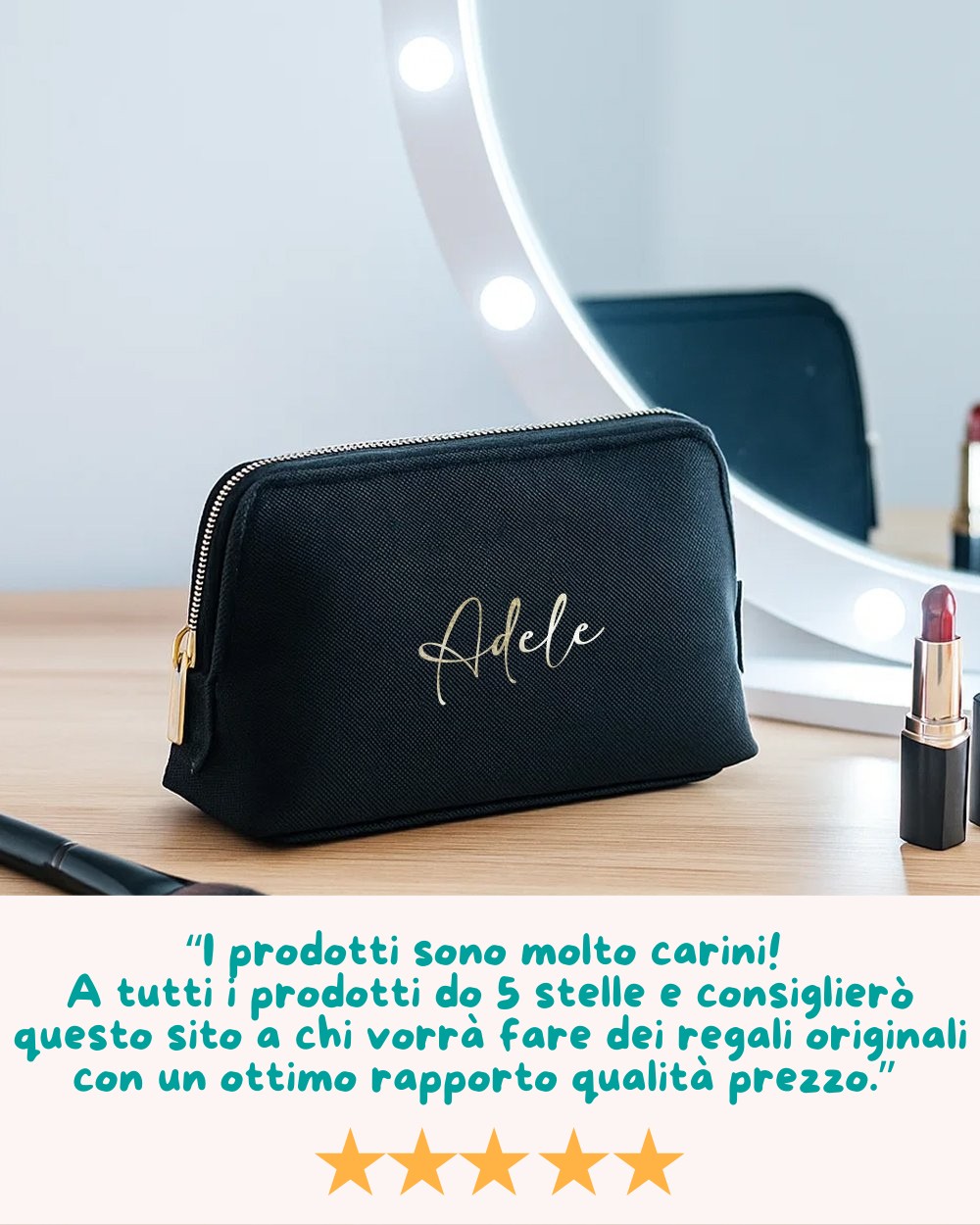 Ciò che rende davvero speciale questa trousse porta trucchi è la personalizzazione con il nome.