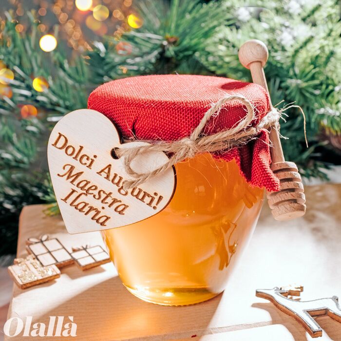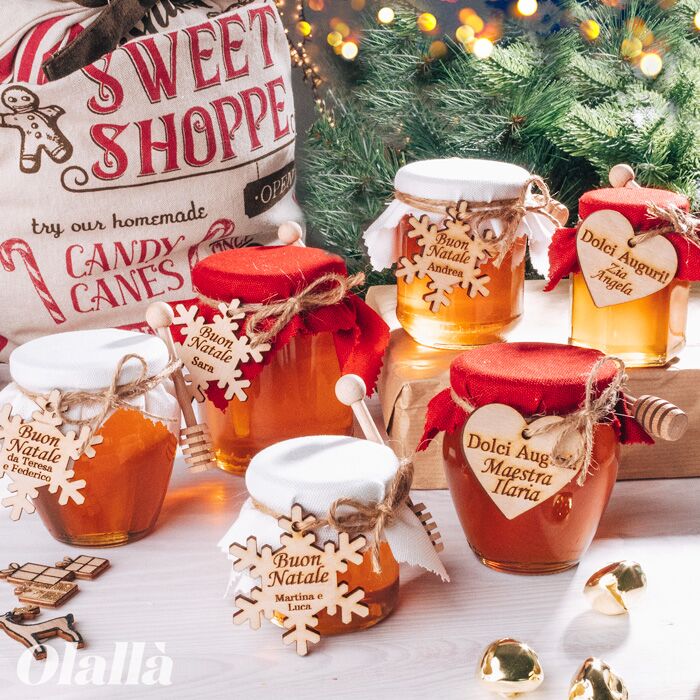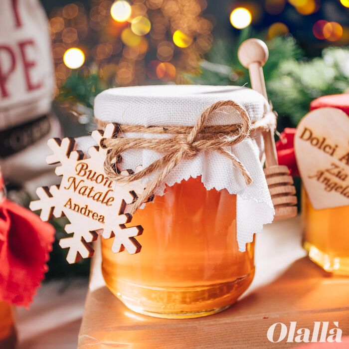 In offerta! Vasetti di Miele Natalizi con Tag in Legno Personalizzata
