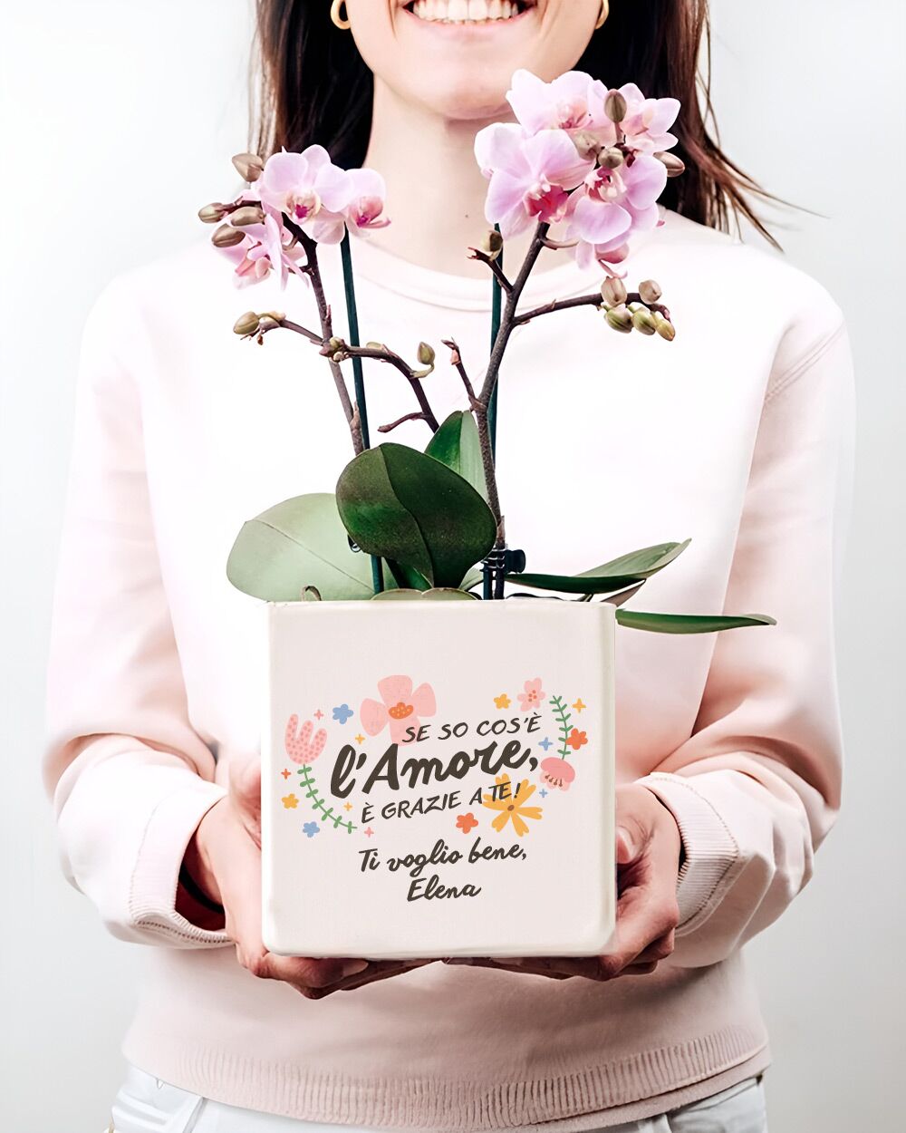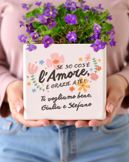 PERSONALIZZAZIONE: possibilità di personalizzare il vaso con la tua frase, sia sul fronte che sul retro. La frase “Se so cos’è l’amore è grazie a te!” rimane standard, è possibile quindi personalizzare solo la frase in basso.