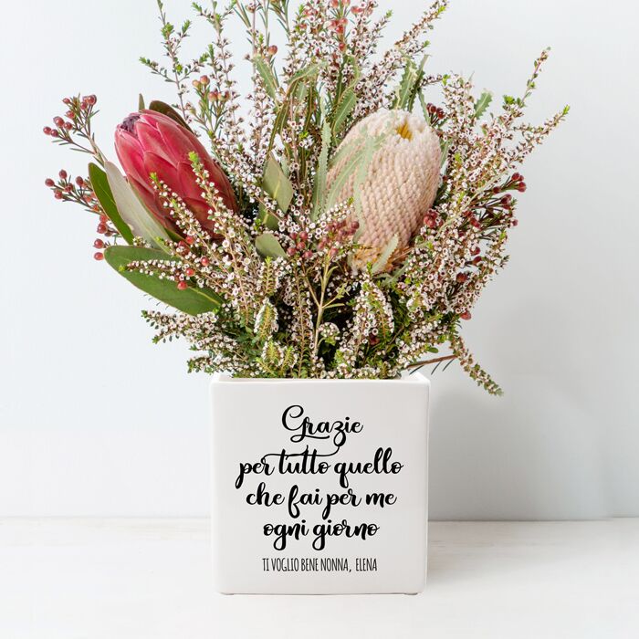 Il vaso è un quadrato di dimensione 13,5 x 13,5 x13,5 cm.