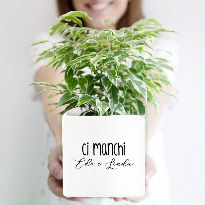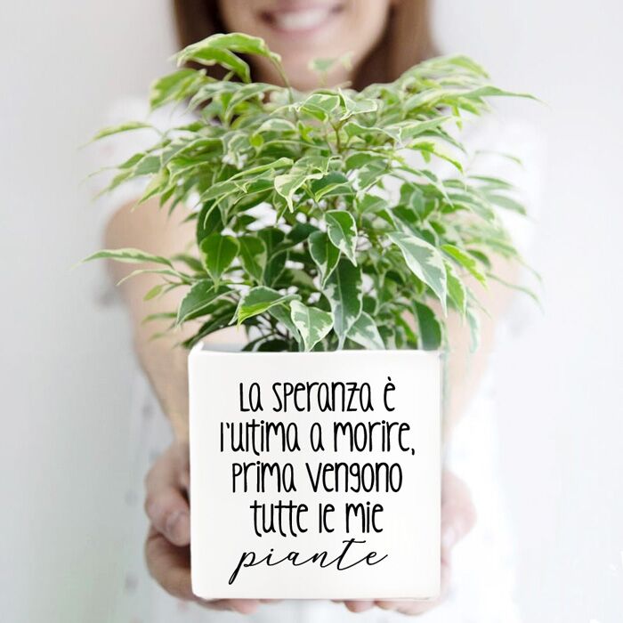Questo splendido vaso in ceramica viene realizzato e stampato artigianalmente. Potete scegliere una delle nostre grafiche predefinite oppure scegliere una vostra frase particolare. La vostra frase verrà illustrata graficamente da una bravissima designer e quindi stampata ad alta qualità sul vostro vaso.