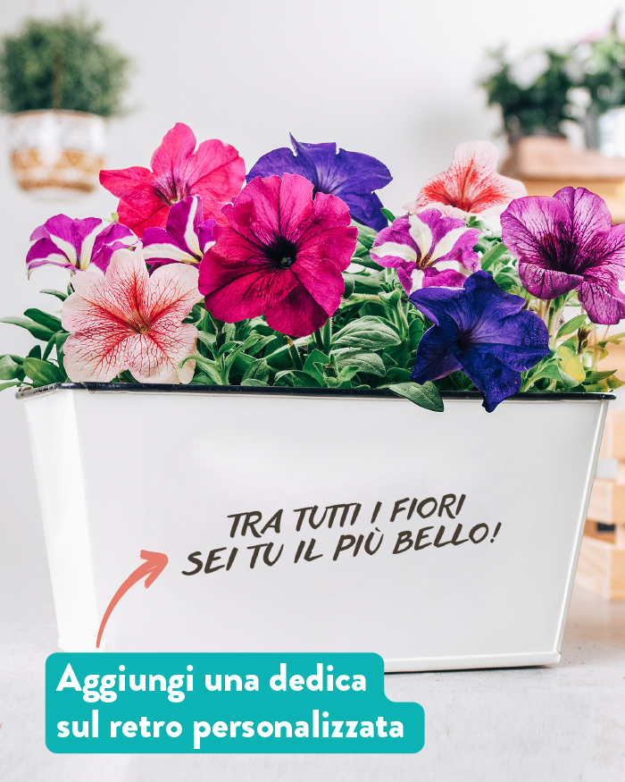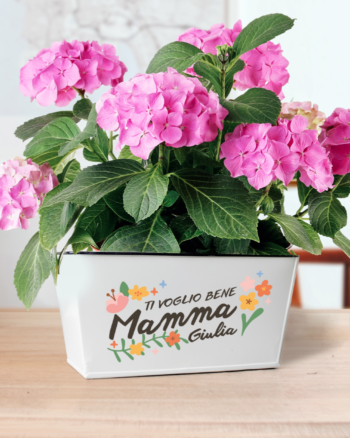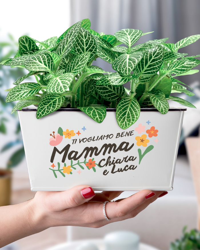 Il vaso fioriera viene fornito senza piante: riceverai solo il contenitore personalizzato. Potrai riempirlo con le piantine che preferisci — succulente, erbe aromatiche, fiori di stagione — oppure abbinarlo a un bel mazzo già pronto per un regalo ancora più completo.