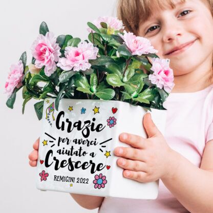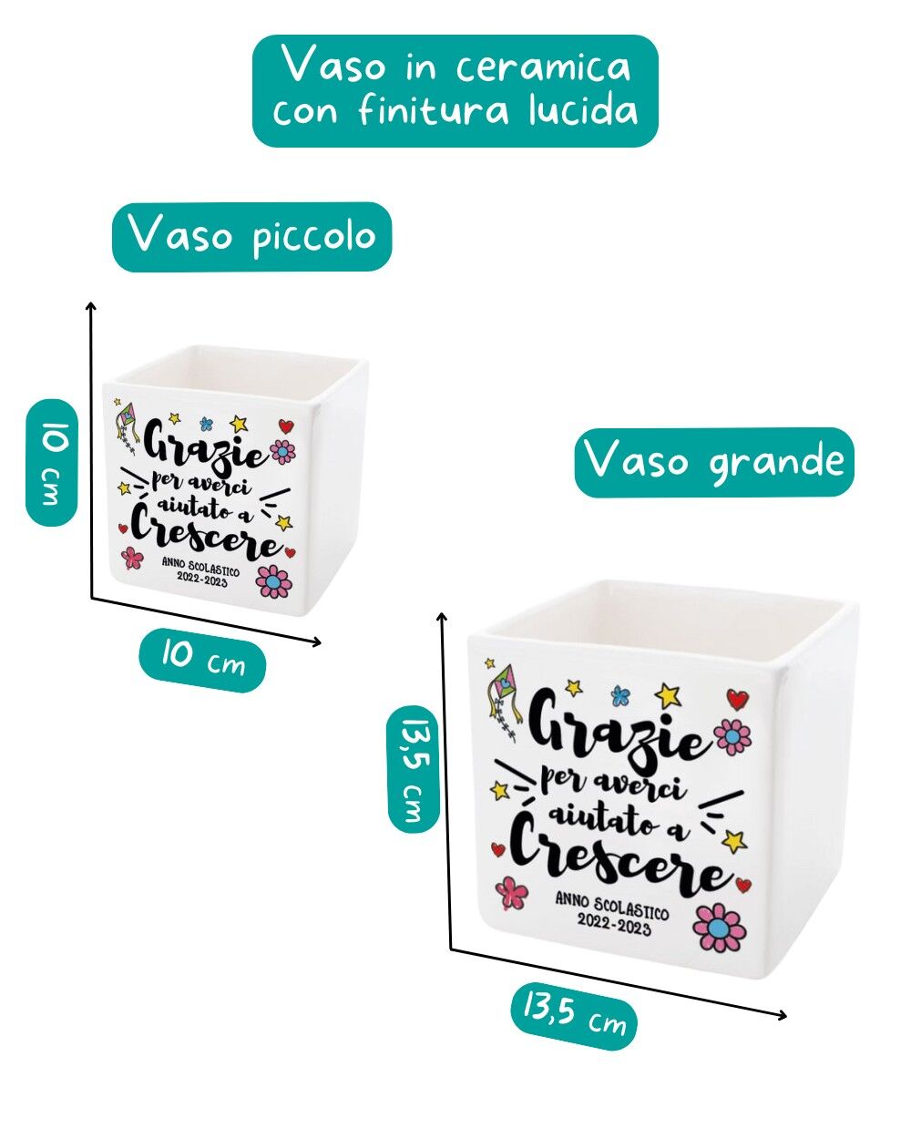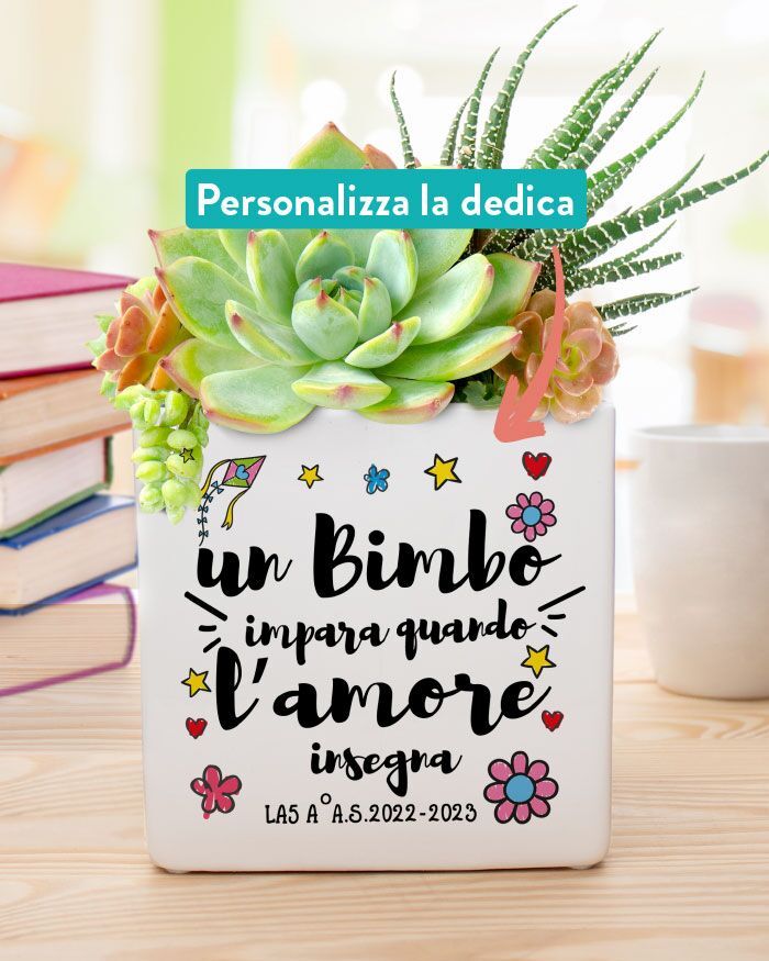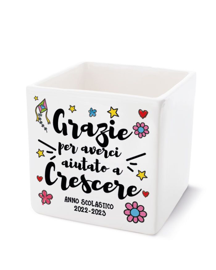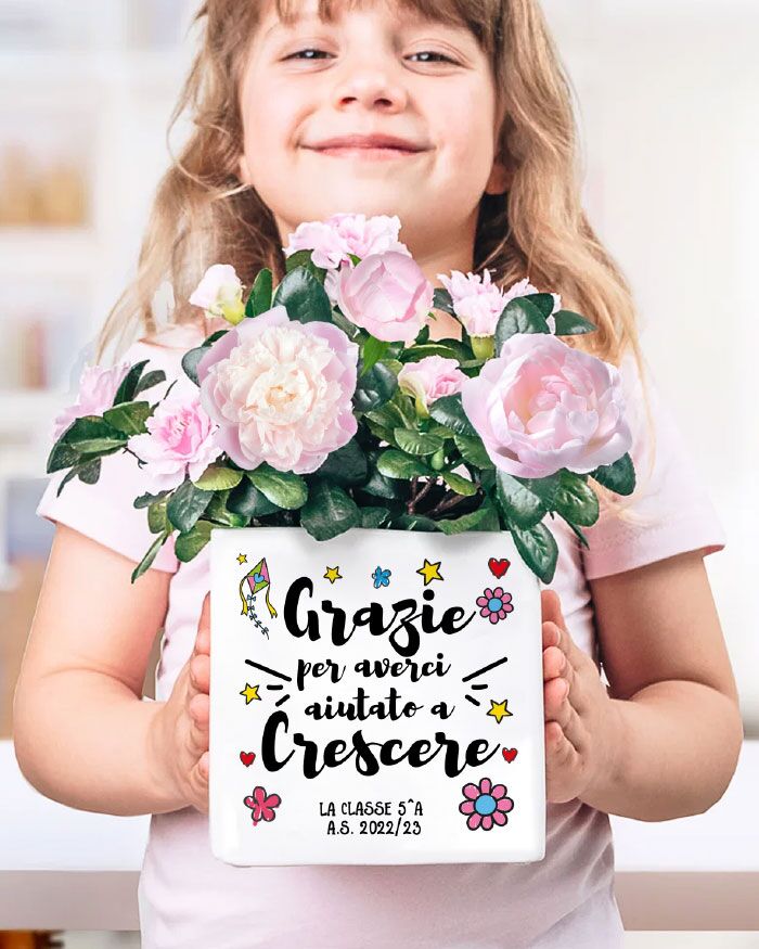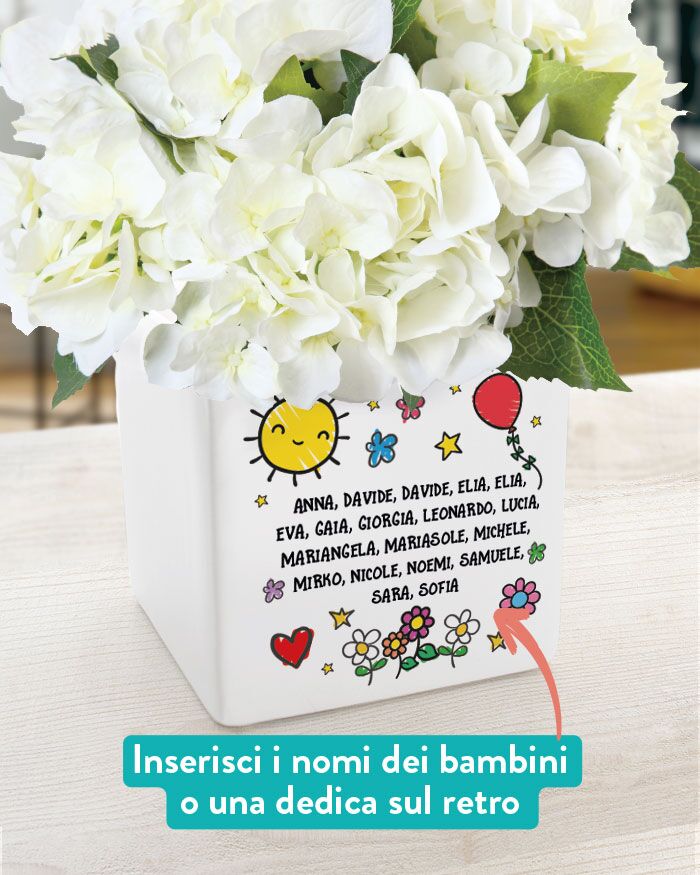 Questo splendido vaso in ceramica viene realizzato e stampato artigianalmente in Italia. Potete scegliere una delle nostre grafiche predefinite oppure scegliere una vostra frase particolare. La vostra frase verrà illustrata graficamente e quindi stampata ad alta qualità sul vostro vaso. Possibile anche la dedica sul retro (eliminando qualche decoro) magari con tutti i nomi dei vostri bambini.