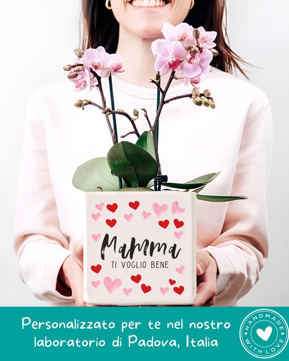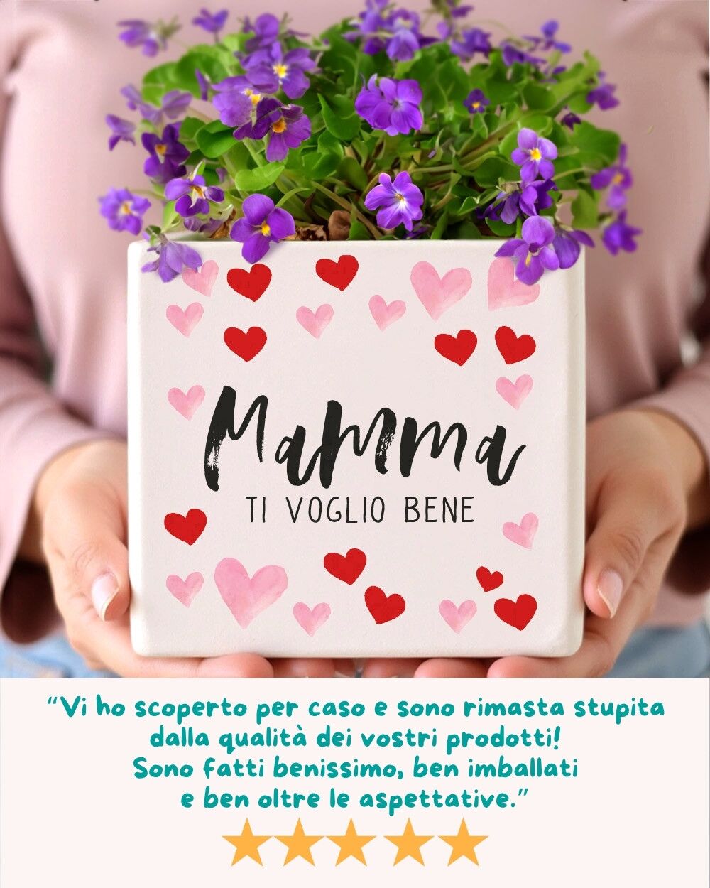 PERSONALIZZAZIONE: possibilità di personalizzare il vaso con la tua frase, sia sul fronte che sul retro. La parola “mamma” rimane standard, è possibile personalizzare quindi solo la frase in basso.