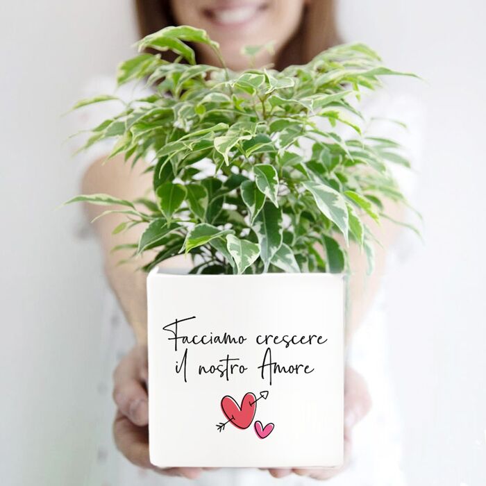 Questo splendido vaso in ceramica viene realizzato e stampato artigianalmente. Potete scegliere una delle nostre grafiche predefinite oppure scegliere una vostra frase particolare. La vostra frase verrà illustrata graficamente da una bravissima designer e quindi stampata ad alta qualità sul vostro vaso.