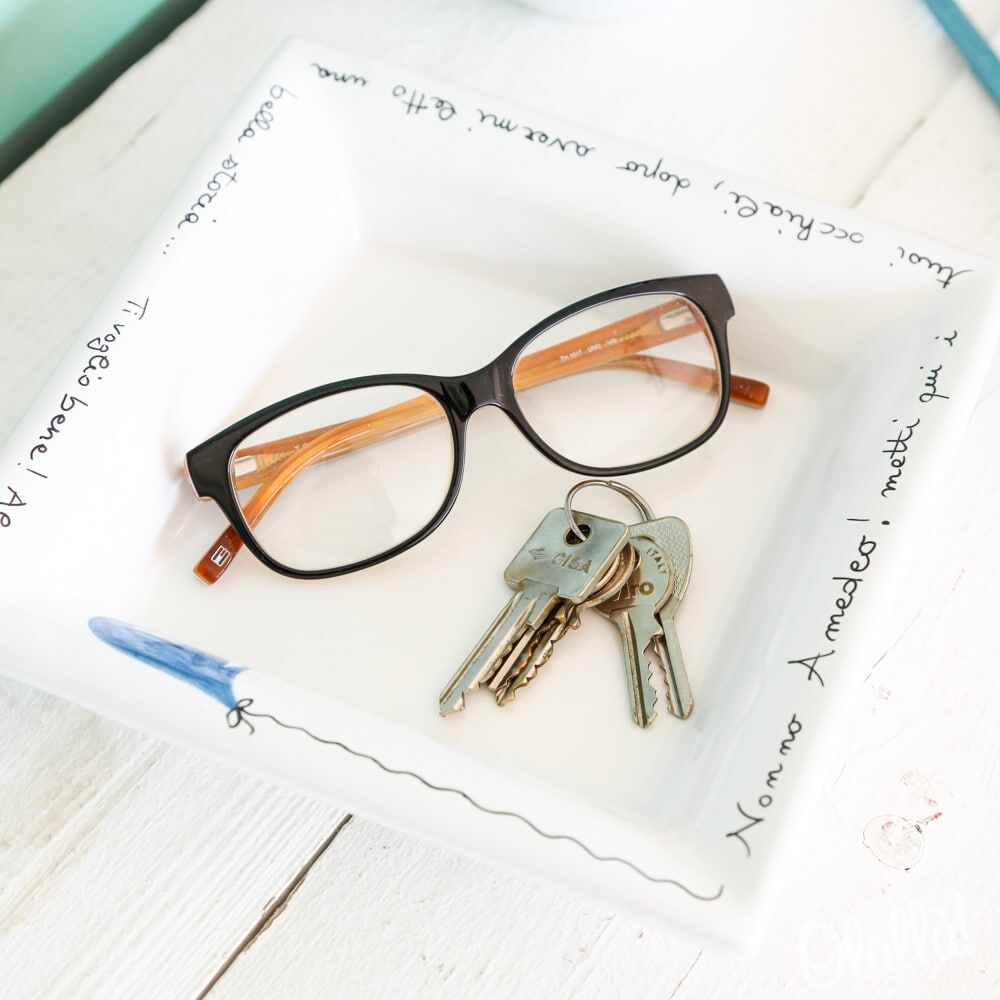 Il vassoio svuotatasche viene realizzato e personalizzato da una ceramista di esperienza trentennale formatasi alla scuola ceramica di Faenza.