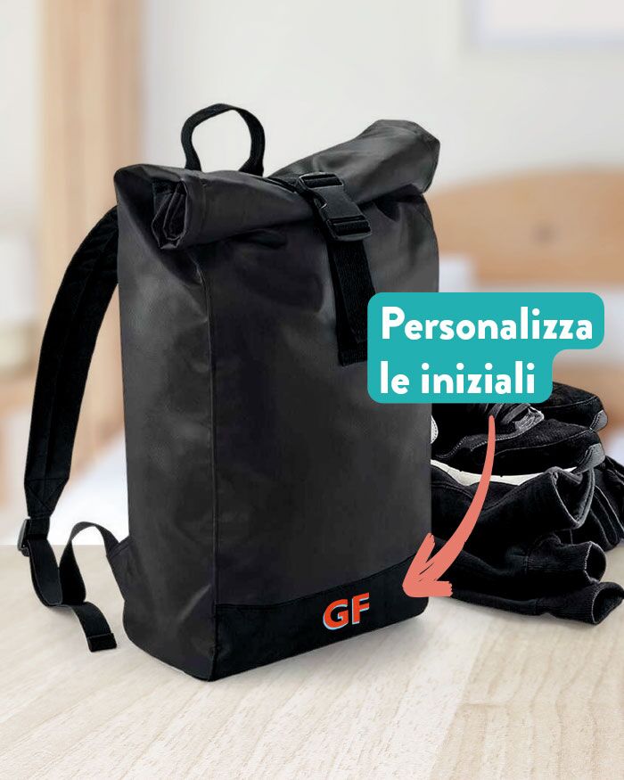 Zaino Impermeabile con Chiusura Roll-Top Personalizzato con Iniziali Colorate Pop – Idea Regalo Laurea Lei, Compleanno, Ideale per Chi Ama Viaggiare
