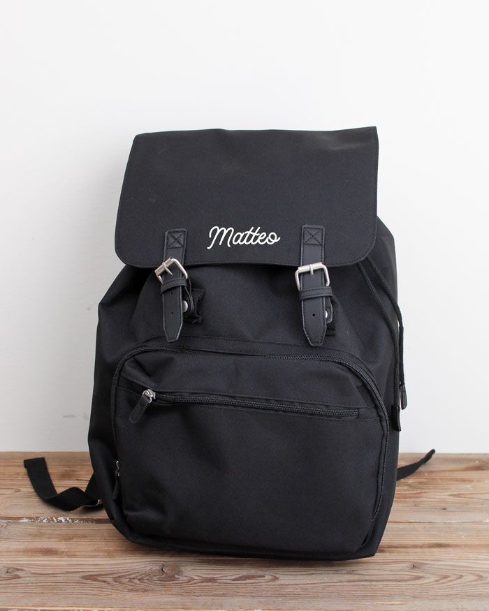 Grazioso zaino in stile vintage con nome personalizzabile, è l’ideale per avere un tocco di classe senza rinunciare alla comodità. Perfetto per dare un tocco vintage e ricercato al vostro outfit, vi accompagnerà durante le vostre trasferte quotidiane! Che si tratti di recarsi a scuola, in ufficio o all’università questo zaino capiente e maneggevole sarà perfetto per contenere tutto il necessario tra cui astucci, quaderni e computer grazie al comodo scomparto imbottito.