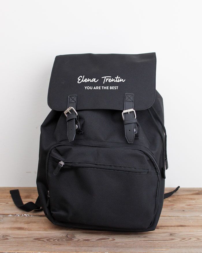Grazioso zaino in stile vintage con nome personalizzabile e frase, è l’ideale per avere un tocco di classe senza rinunciare alla comodità. Perfetto per dare un tocco vintage e ricercato al vostro outfit, vi accompagnerà durante le vostre trasferte quotidiane! Che si tratti di recarsi a scuola, in ufficio o all’università questo zaino capiente e maneggevole sarà perfetto per contenere tutto il necessario tra cui astucci, quaderni e computer grazie al comodo scomparto imbottito.