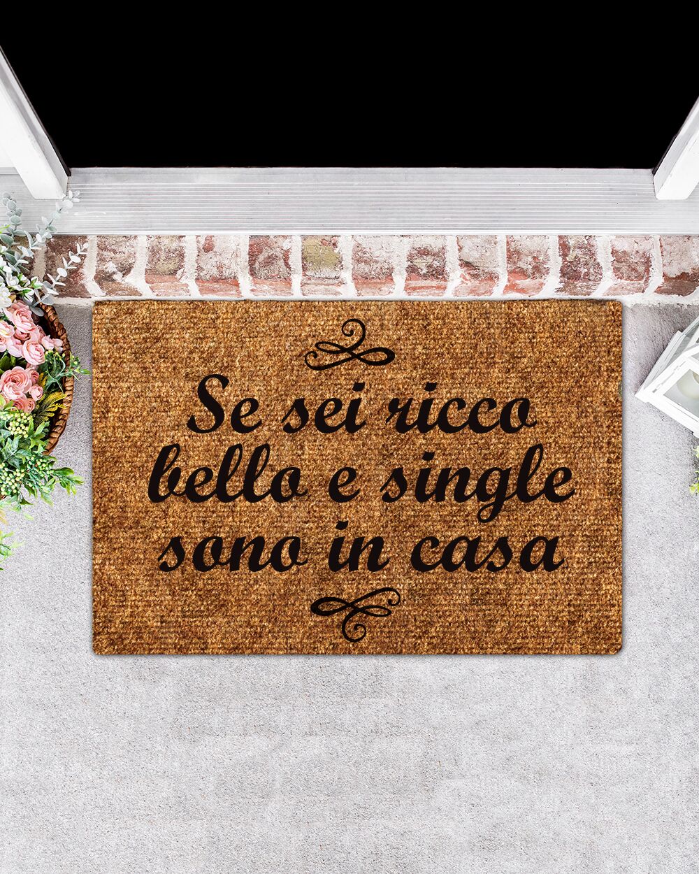Stai cercando un’idea regalo unica e spiritosa per un’amica o una coppia di amici che va a convivere? Oppure vuoi semplicemente dare un tocco di originalità alla tua casa? Il nostro Zerbino Divertente Personalizzato con la scritta “Se Sei Ricco Bello e Single Sono In Casa” è la scelta ideale! Non solo farà sorridere chiunque entri, ma è anche pratico e di alta qualità.