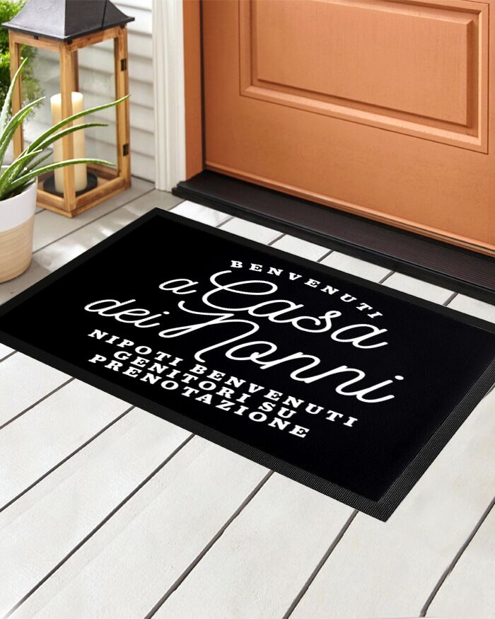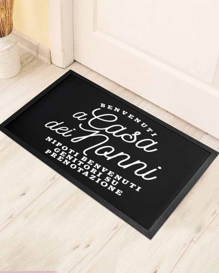 Zerbino personalizzato con una frase simpatica come “Benvenuti a Casa dei Nonni, nipoti benvenuti genitori su prenotazione”. Personalizzala a piacimento con la frase che desideri e realizza uno simpatico zerbino personalizzato, un regalo non solo utile ma anche super originale da fare ai vostri nonni o a chi amate di più!