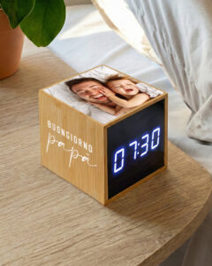 Sveglia Cubo in Legno “Buongiorno Papà” Personalizzata con Foto Un dolce risveglio dedicato al papà Questa sveglia personalizzabile in legno è molto più di un semplice orologio: è il primo sorriso della giornata per l’uomo più importante della tua […]